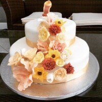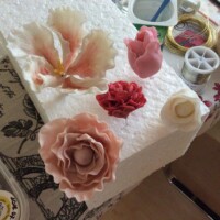 Június végén készült Édesanyám 50. Születésnapjára egy torta, melyet közel egy hétig készítettem a díszek miatt, de hát egy ilyen fontos eseményre nem is állhattam elő egy 15 centiméteres hagyományos tortával. A dolog nehézségét mégis az okozta, hogy a virágok kivételével mindent egy apartmanházban készítettem, ahol a felszerelés elég csekély volt, tehát én a fél házzal a hátamon utaztam és persze így is itthon hagytam x dolgot. A hűtőben faltól falig fért be a torta,nem tartogathattuk sokáig, de a csapat szerencsére két alkalom alatt belakanalazta az egészet. 😀