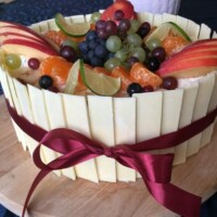 Egy szuper cukrász blogon láttam hasonló kinézetű tortát és első látásra megtetszett. Gondoltam ilyesmit készítek a testvérem szülinapjára a napokban, hiszen nagyon szereti a túrós tortákat és az kiválóan passzol majd a gyümölcskavalkádhoz is. A torta szélét Callabaut fehércsokoládé lapocskák alkották, amik kellemesen egészítették ki a nem túl édes krémet és emberpróbáló feladat elé is állították az ünnepeltet, mert nem kis munka volt a tortát felvágni ilyen borítással. Azért ezzel az akadállyal megküzdve jót falatoztunk, miközben megízleltük az idei termésből készült pálinkánk kellemes ízét.